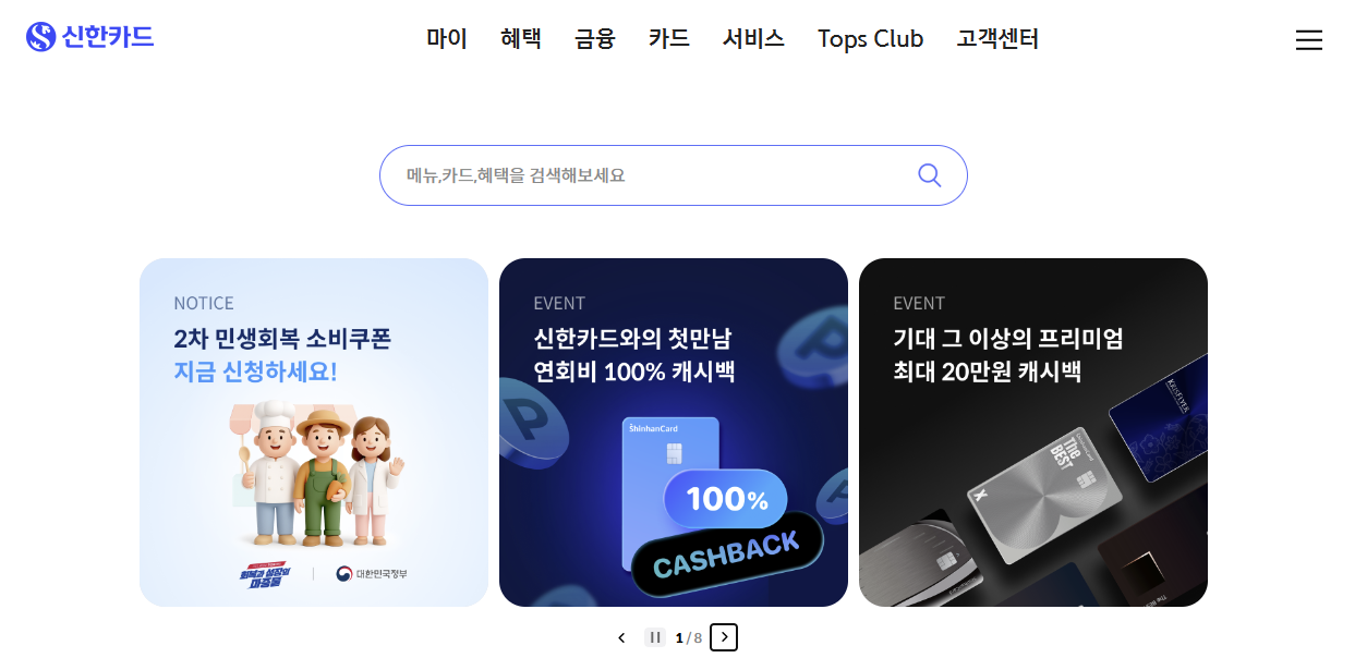신한카드 홈페이지 바로가기 (www.shinhancard.com)