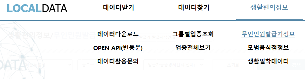 무인민원발급기 위치 조회 바로가기 (www.localdata.go.kr)