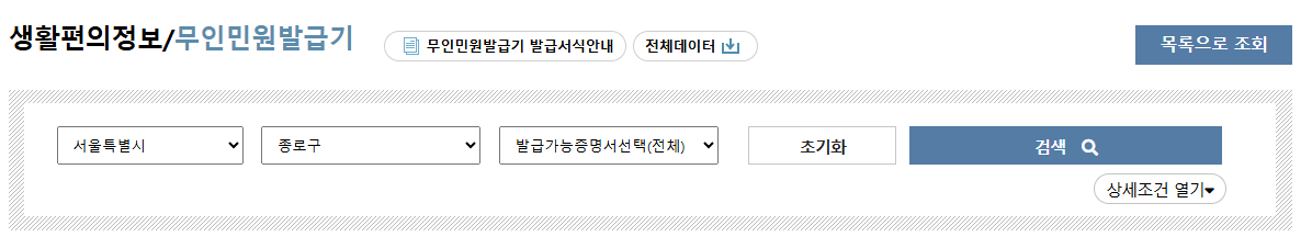 | 전국 발급기 현황을 데이터셋으로 제공 | 지도 연동 기능이 없어 직접 검색 필요 |