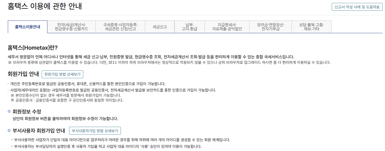 - 홈택스 접속