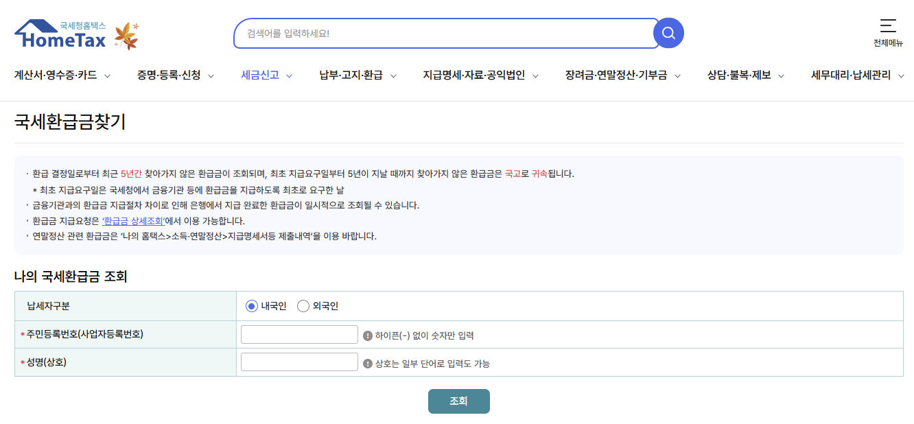 국세 환급금 조회 시기와 유효기간