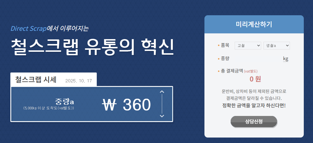 고철시세 가격표 조회 바로가기 (http://directscrap.co.kr/)