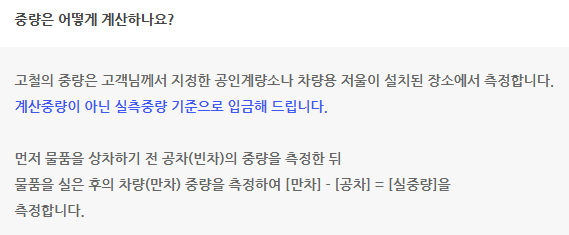 - 대부분 지게차 또는 차량 저울(트럭 스케일) 을 사용해 무게를 정확히 측정합니다.