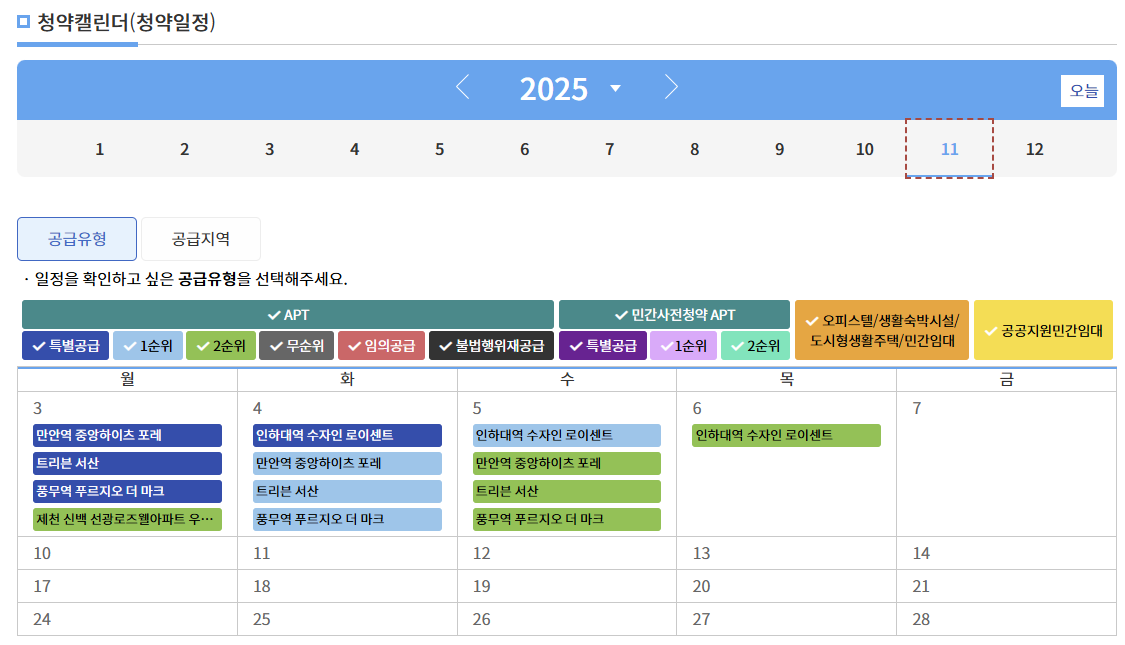 이 사이트는 단순히 신청만 하는 곳이 아니라, 무주택 기간, 청약통장 가입 기간, 가점 계산, 경쟁률 확인 등 청약 준비에 필요한 모든 정보를 제공합니다. 또한 공공분양, 민영주택, 신혼희망타운 등 다양한 주택 유형별로 신청이 가능하도록 구성되어 있습니다.