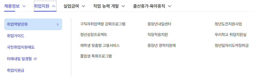| 훈련과정 검색 | 직무·산업별 교육과정 검색, 지역별 필터링 | 구직자·재직자 |