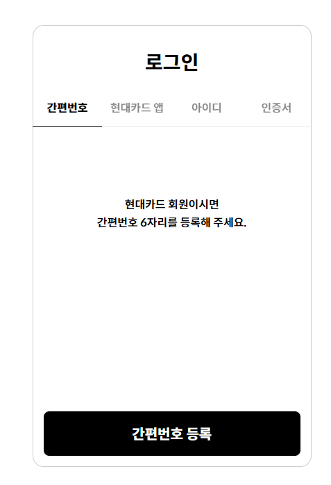 - 현대카드 ID 로그인: 회원가입 시 등록한 이메일 또는 아이디로 로그인합니다.