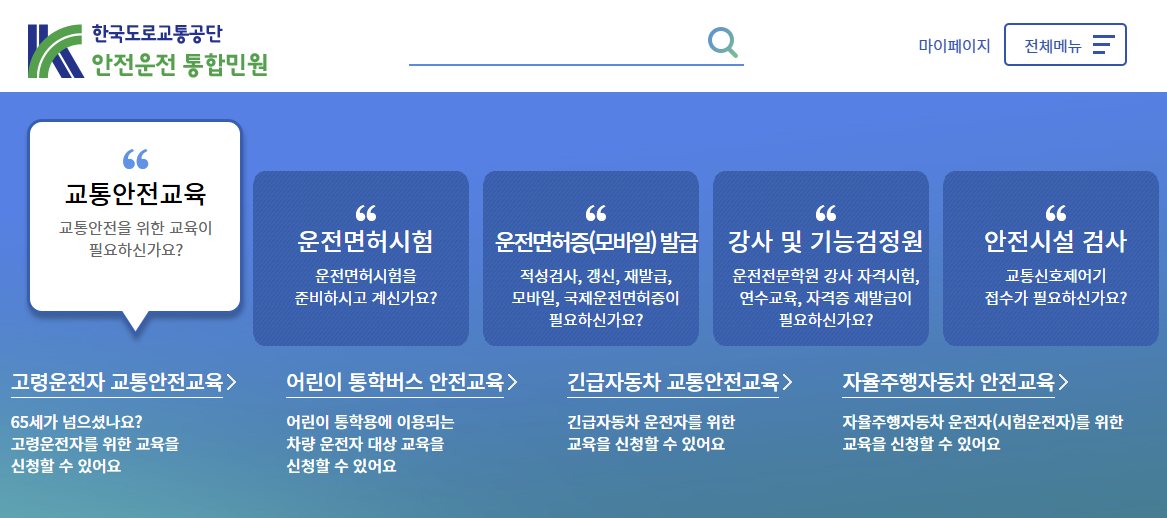 운전면허시험장을 직접 방문하면 대기 인원에 따라 2~3시간 이상 소요될 수 있지만, 인터넷을 활용하면 실질적인 신청 시간은 5분 내외로 충분합니다. 신청은 '도로교통공단 안전운전 통합민원' 홈페이지를 통해 진행되며, 아래 순서대로 차근차근 따라 하시면 됩니다.