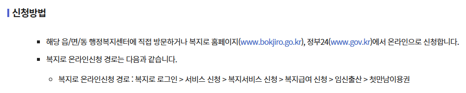 첫만남 이용권 신청방법 사용처 안내