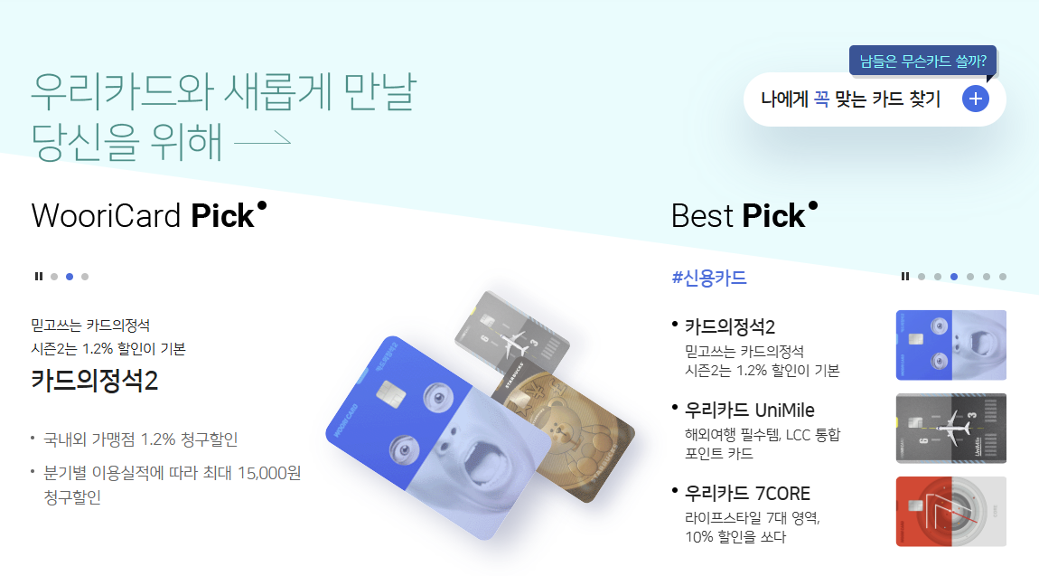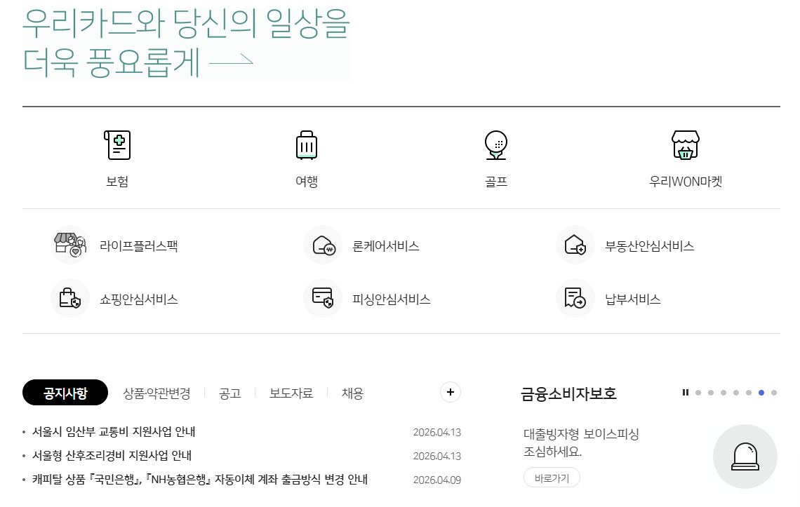 우리은행 카드 홈페이지 바로가기 (wooricard.com)