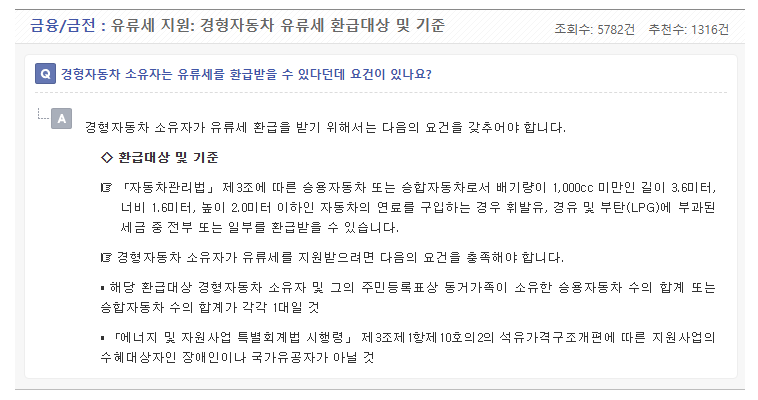 일반 개인이 가장 많이 찾는 것은 경차 유류세 환급입니다
