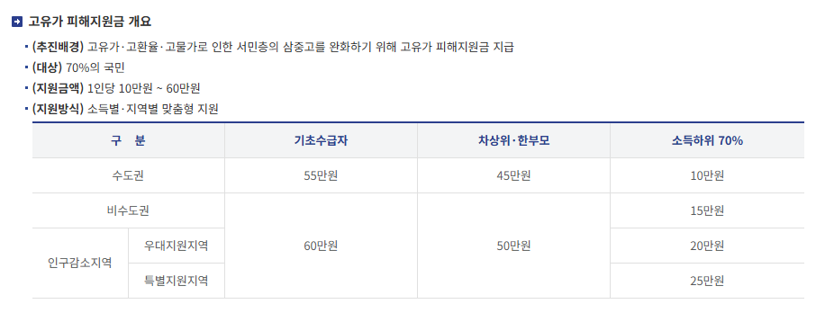 | 지급 금액 | 개인별 차등 | 소득 구간과 지역에 따라 다름 |