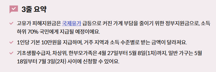 | 지원 성격 | 고유가 피해지원금 | 주유 즉시 할인 카드가 아니라 신청형 지원금 |