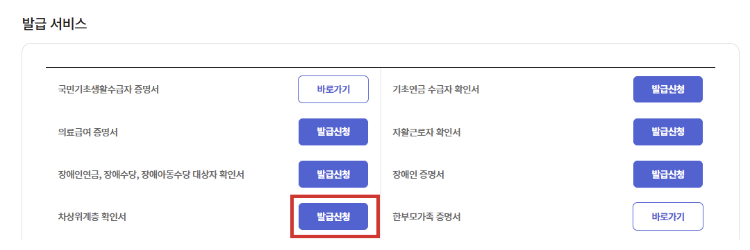 차상위계층 확인서 발급 바로가기