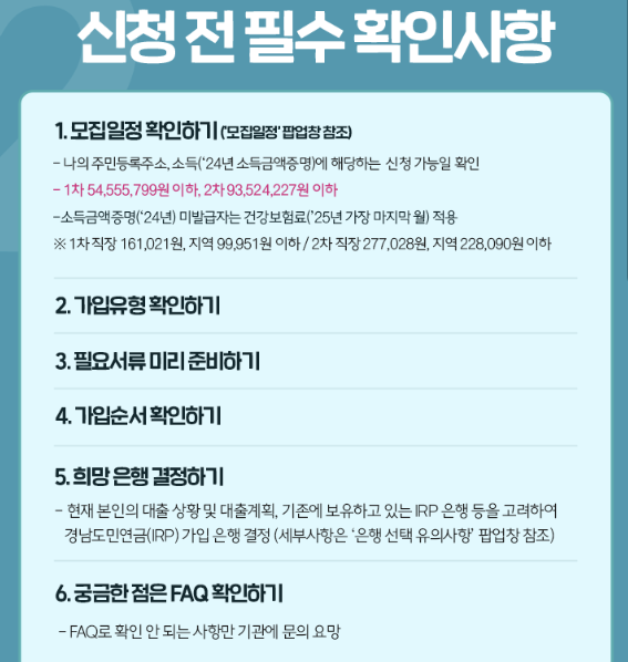 | 신청 후 | 자격 검증 결과 확인 | 계좌 개설 준비 | 도외 전출 시 적립 중단 가능 |