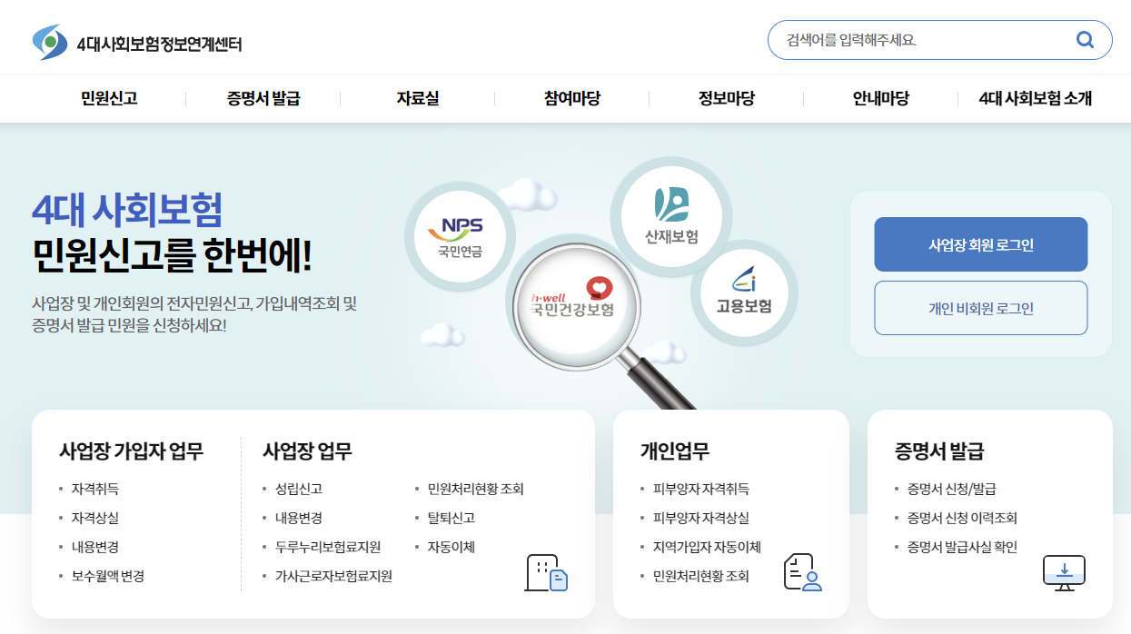 | 온라인 | 1. 4대사회보험 정보연계센터 접속 2. 본인 인증 후 증명서 발급 |
