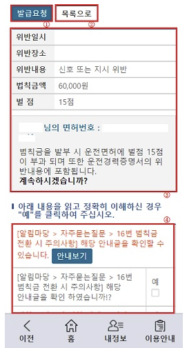 모바일 애플리케이션을 통한 교통범칙금 조회