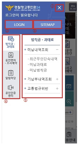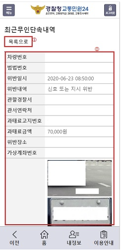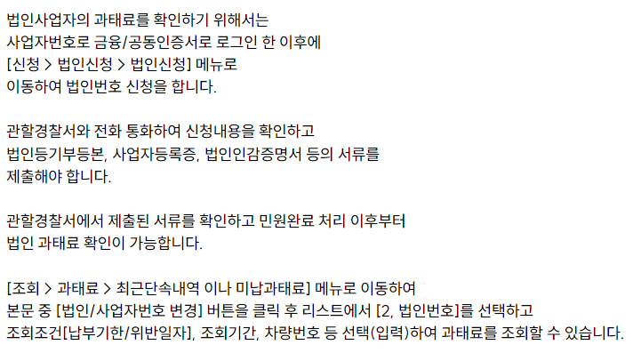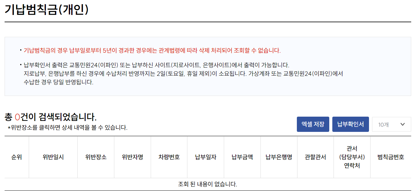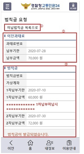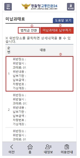 | 과태료 조회 | 미납 과태료와 함께 조회 가능합니다. |