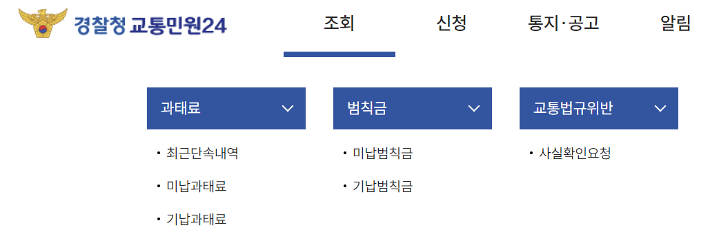 경찰청 교통민원24(이파인)에서 교통범칙금 조회하기