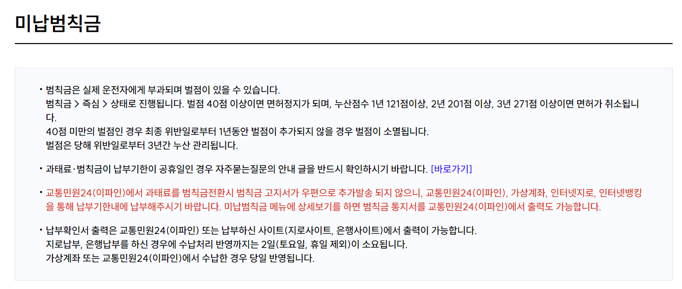 교통범칙금 납부 방법