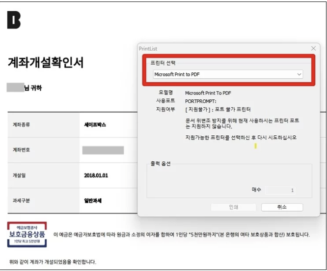 | PDF 또는 이미지 파일 저장 | 통장사본을 PDF 또는 이미지(JPG) 파일로 저장 가능 | 이메일 전송, 디지털 서류 제출이 필요한 경우 |