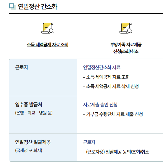 연말정산 미리보기 서비스는 다음의 3단계로 구성되어 있습니다.